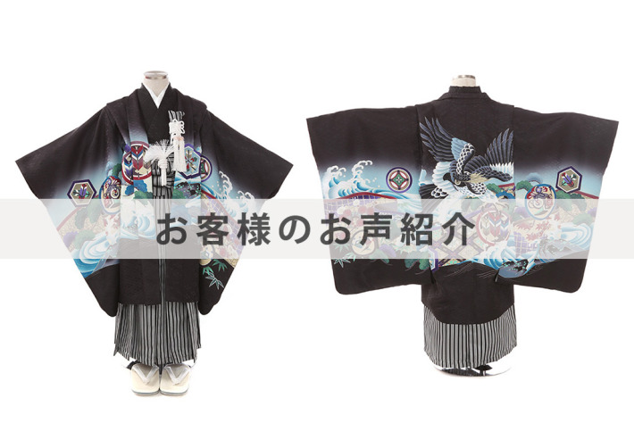 ご利用頂いた商品:お宮参り産着|黒地に鷹と軍配に扇|U0048 男の子