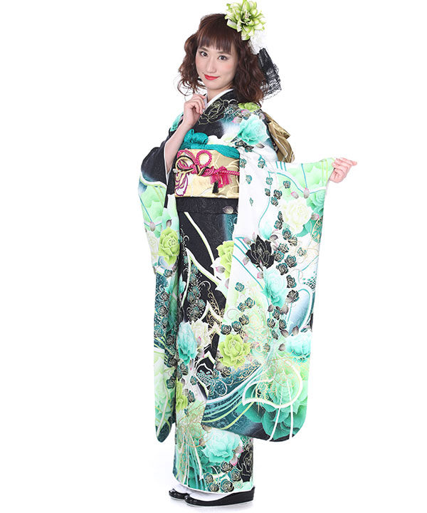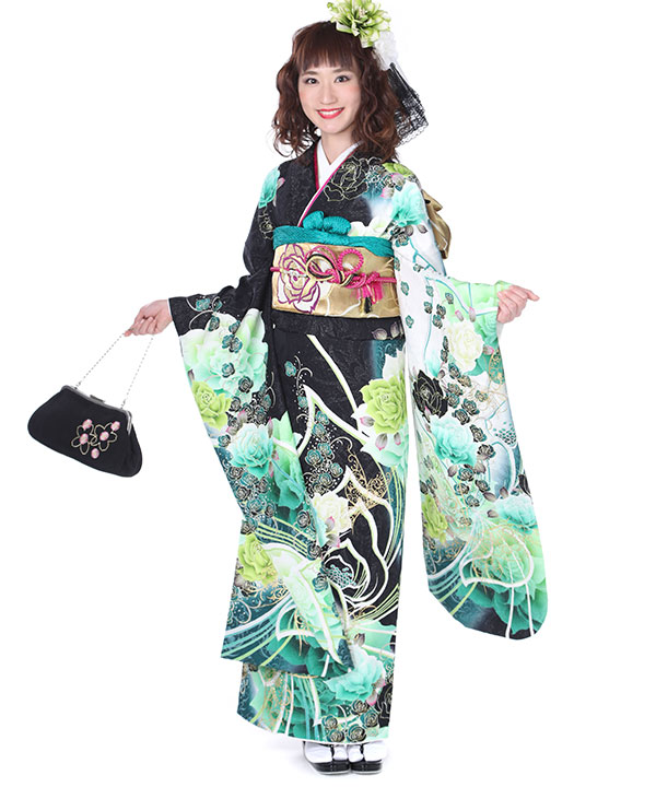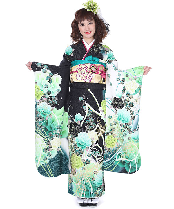 振袖|黒に薔薇蝶|F0140 L