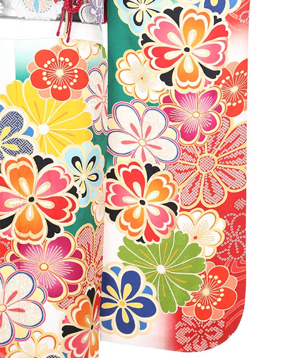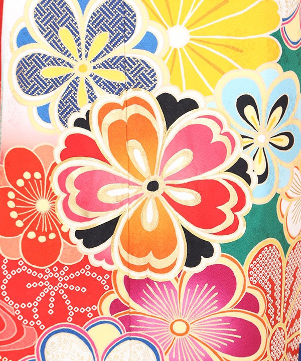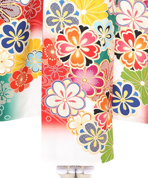 振袖|白地にモダンな桜と梅の舞|F0269|LL