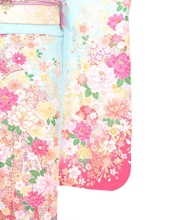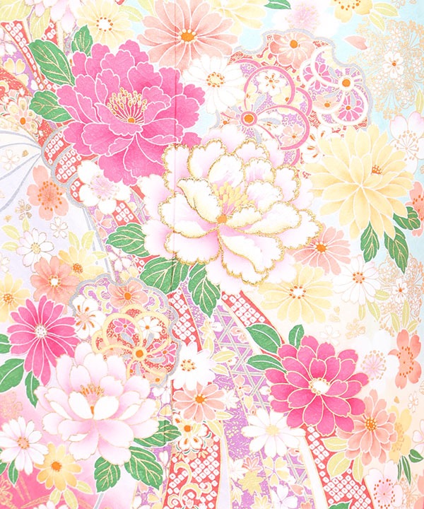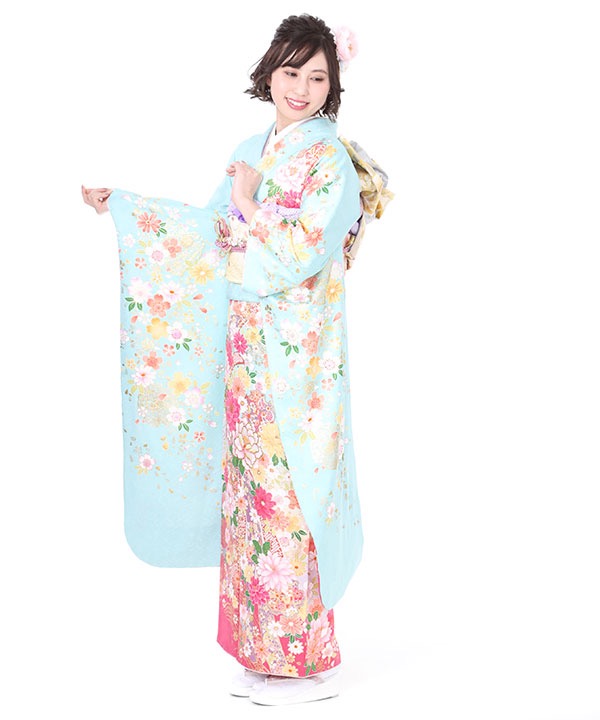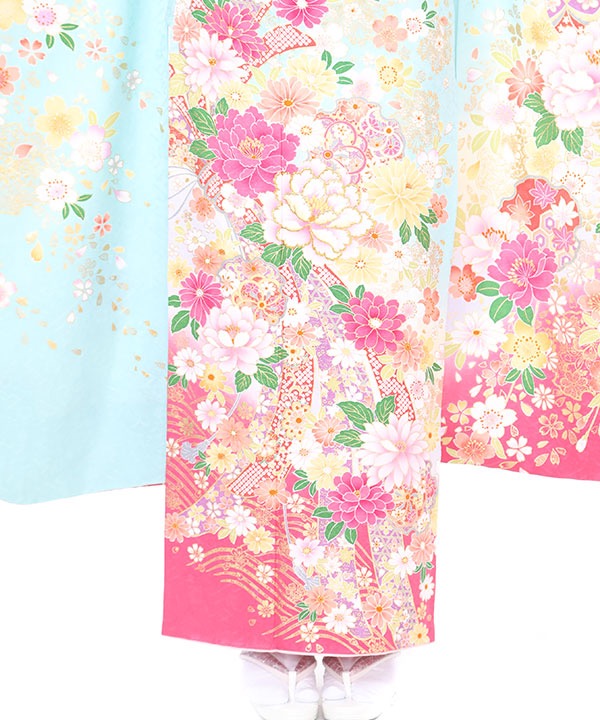 振袖|水色地に牡丹束ね熨斗に雪輪取り|F0280|S