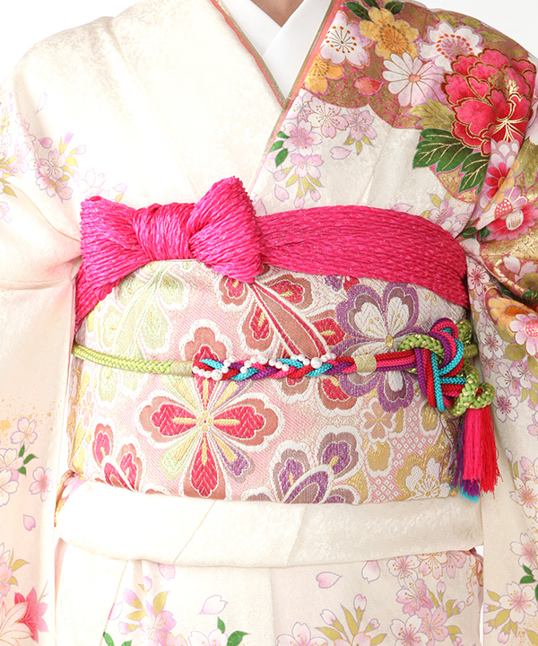 ※振袖/袋帯/帯締め/帯揚げ/伊達衿は、原則モデル撮影通りのものをお付け致しますが、レンタル使用頻度による経年劣化により、画像と異なるものをセットさせていただく場合がございます。ご了承ください。