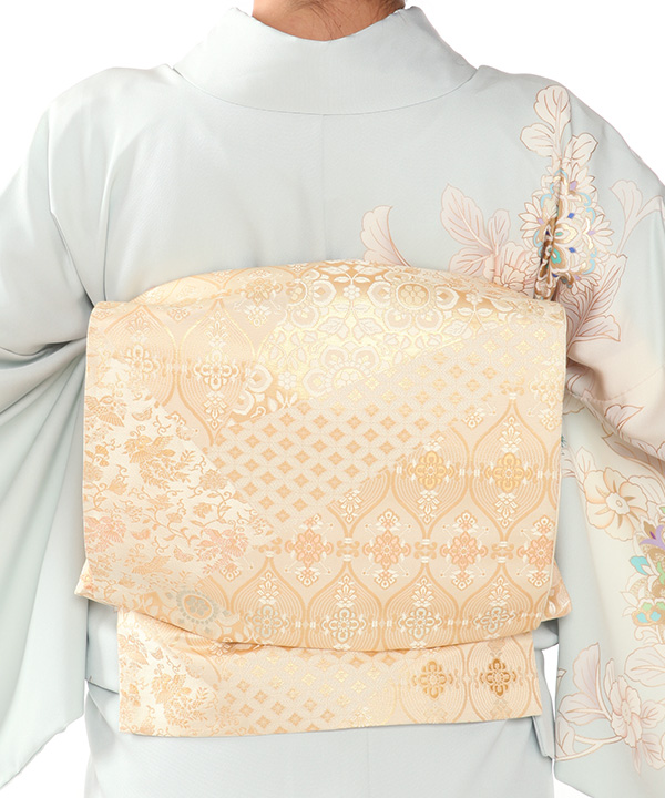 ※訪問着/袋帯/帯締め/帯揚げは、原則モデル撮影通りのものをお付け致しますが、レンタル使用頻度による経年劣化により、画像と異なるものをセットさせていただく場合がございます。ご了承ください。