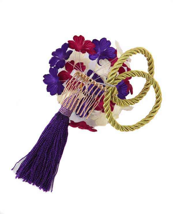髪飾り|紫の小花にタッセル|KZ0059 ※単品レンタル不可※