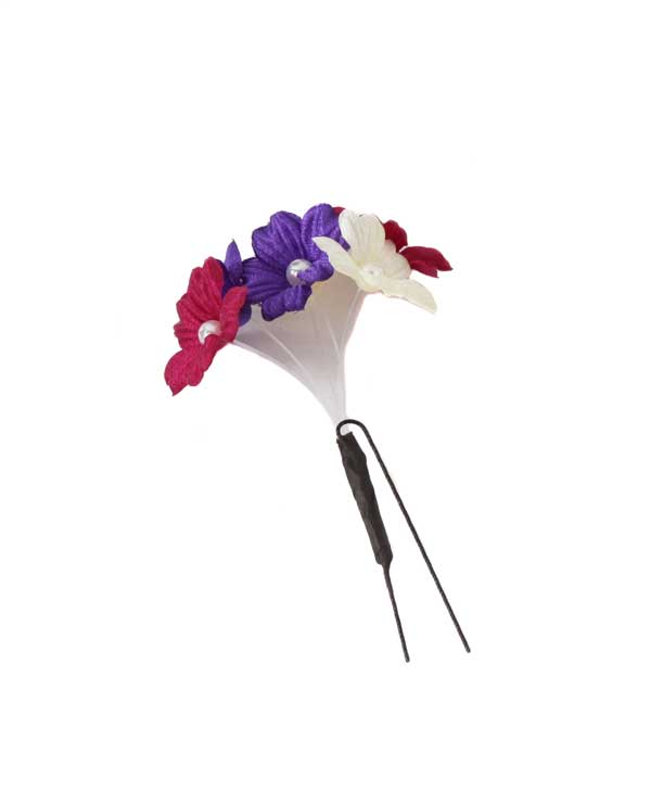 紫、赤紫、アイボリーの小花の髪飾り。商品はコーム、Uピンと独立していますので自由にアレンジが可能です。ショートヘア・ロングヘアどちらにもおすすめです。