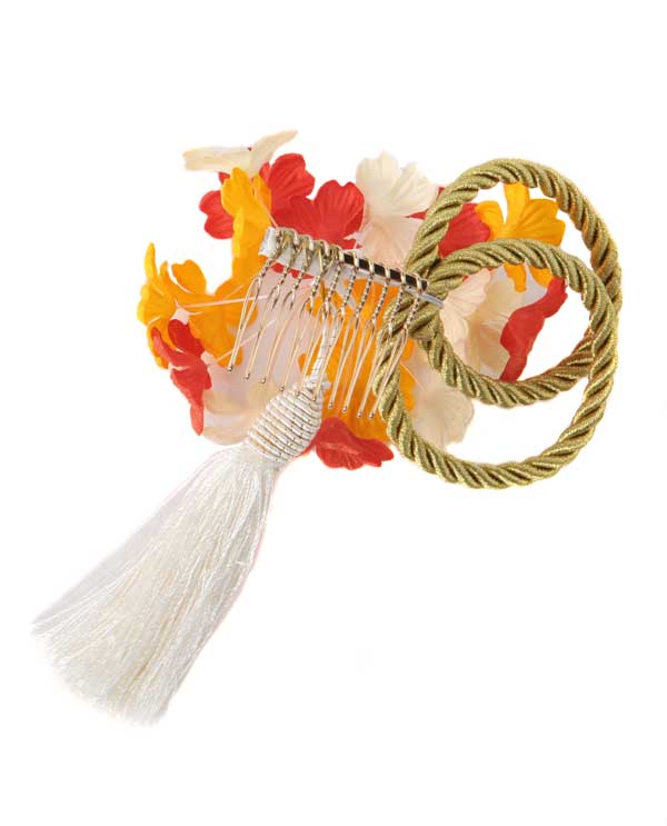 髪飾り|オレンジの小花にタッセル|KZ0060 ※単品レンタル不可※