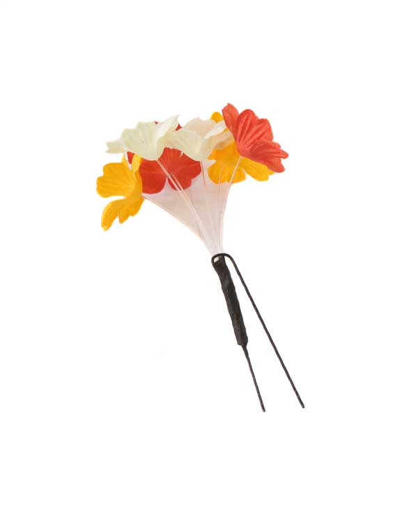 オレンジ、黄色、アイボリーの小花の髪飾り。商品はコーム、Uピンと独立していますので自由にアレンジが可能です。ショートヘア・ロングヘアどちらにもおすすめです。