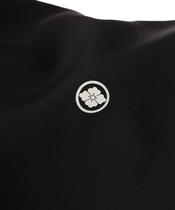 背と両袖、胸元の抱き紋の五つ紋入り。