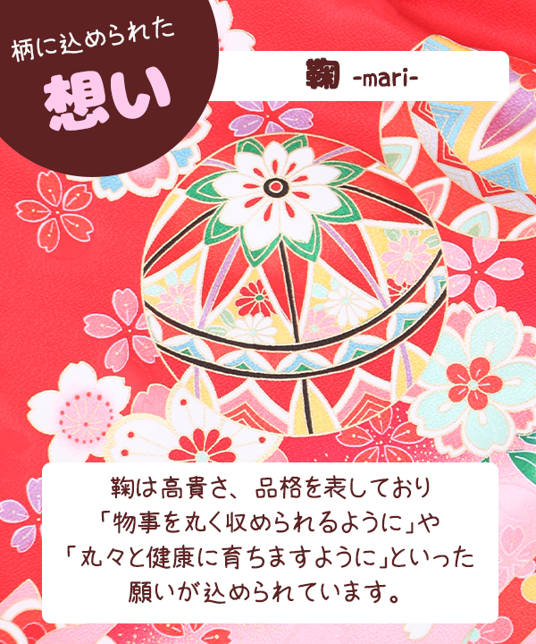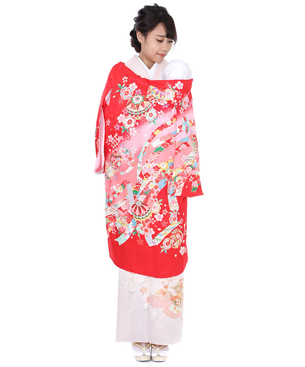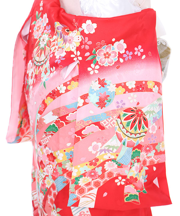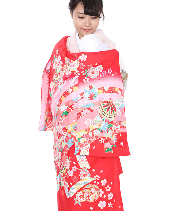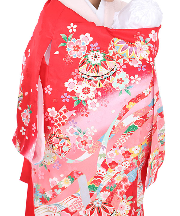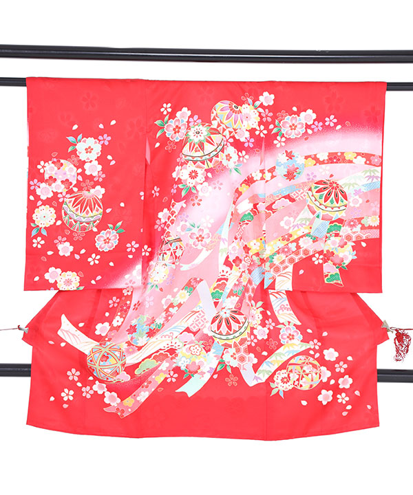 お宮参り産着|赤地に鞠と熨斗目|U0019 女の子