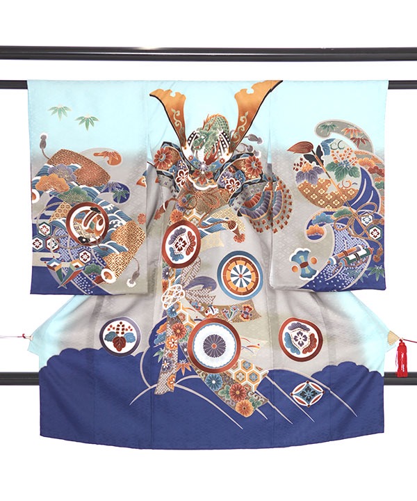 お宮参り産着|水色地に兜と束ね熨斗|U0119 男の子