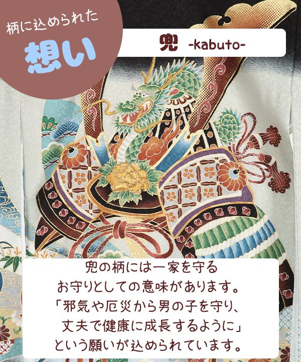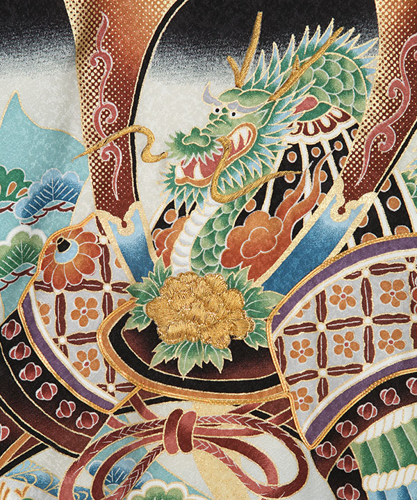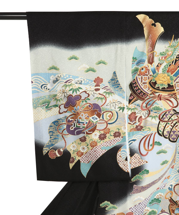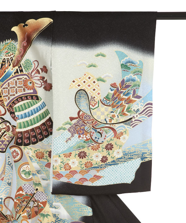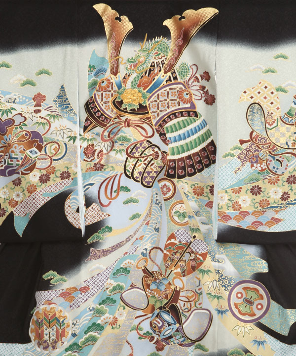 お宮参り産着|黒に兜 暴れ熨斗|U0287 男の子