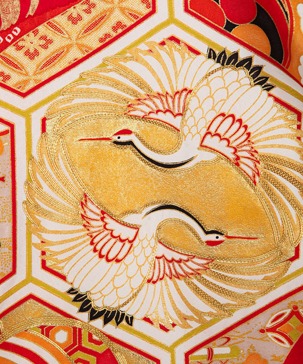 お宮参り産着|【経済産業省大臣官房商務・サービス審議官賞】赤に向い鶴 宝尽くし|U0307 女の子
