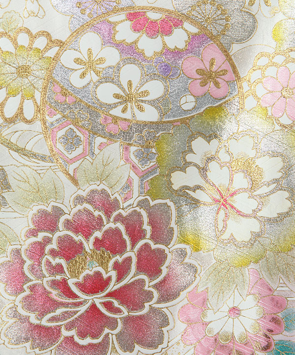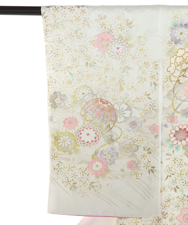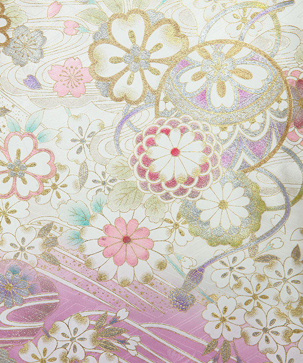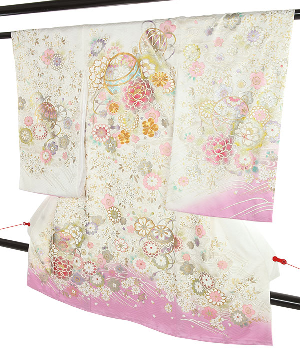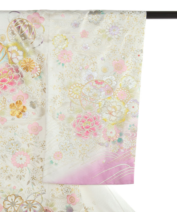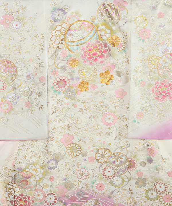 お宮参り産着|白地に藤色 鞠や桜 金彩金駒刺繍|U0320 女の子