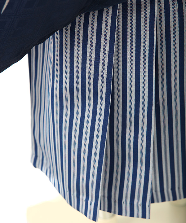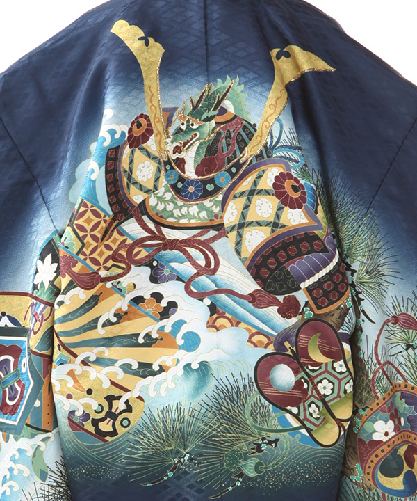 七五三(五歳)|兜に波頭柄羽織 紺着物×紺縞袴|W-B-5-74