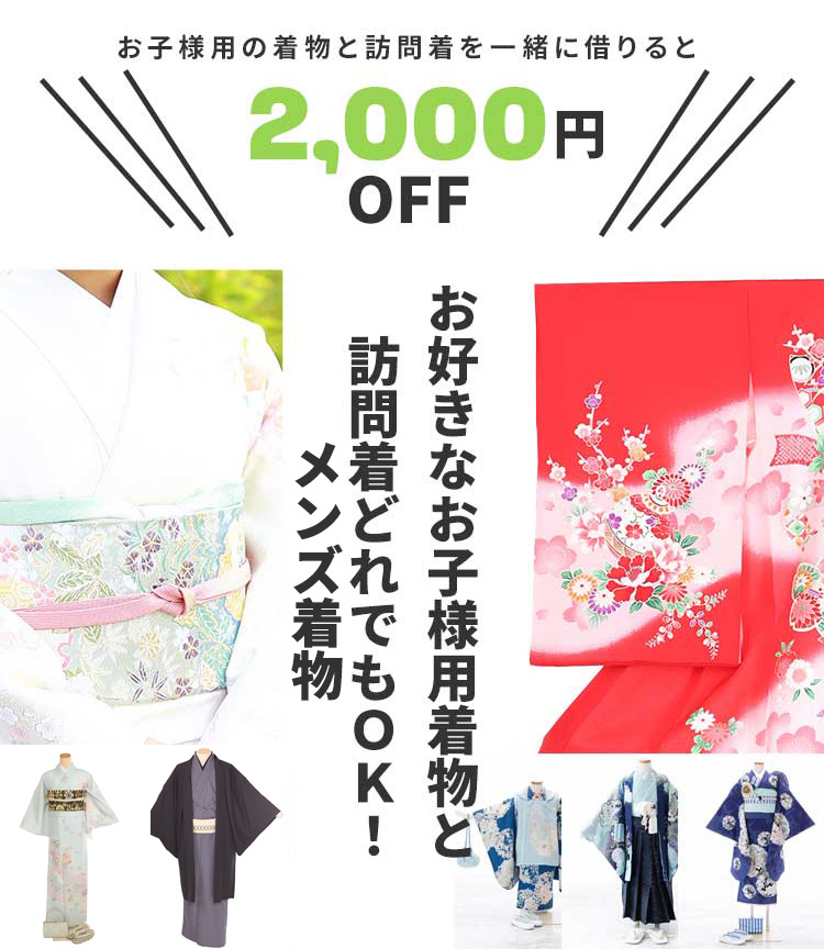条件:同一のご利用日にてお子様用着物(産着・七五三着物)と訪問着・メンズ着物2点まとめて15,000